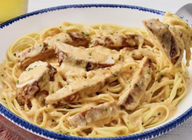 “Saturated fat has been linked with increased cholesterol levels and cardiovascular risk,” Pacheco says while giving us some context for why you should be wary of the Chicken Tortelloni Alfredo from Olive Garden. “It’s generally recommended to limit saturated fat to less than 10% of your total calories per day. For someone who consumes approximately 2,000 calories per day, you’d ideally want to limit your saturated fat to about 22 grams for the day.”