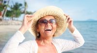 “Not only is this move good for your core, but it’s also ideal for the upper back and shoulders,” says Murdock. “Begin with your feet hip-width apart, and hold a dumbbell at a desirable weight. Make sure to hold the dumbbell end to end at the right hip. Keep a soft bend in your knees. Slowly bring the dumbbell up to your opposite shoulder, and then halo it around the back of your head. The dumbbell should end down at your left hip.” Aim for three sets of 15 rotations.