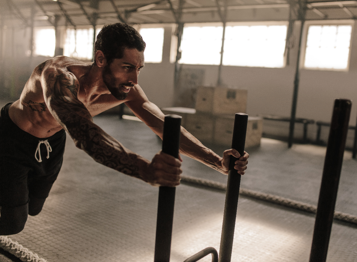 If your gym has a sled and turf, start with light weights, and slowly work your way up. If you don’t have a sled, use a treadmill. While the machine is off, grab the handles, and start “marching” by pushing the belt backward.