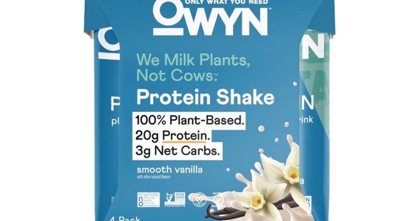 OWYN Protein Shakes are 100% vegetarian and the protein in this shake is from a blend of pea protein, flaxseed, oat, and pumpkin seeds. This shake is also low in saturated fat and sodium, while providing 20 to 25% of the Daily Value for more than 25 essential nutrients, including calcium, vitamin D, folate, and other B-vitamins.