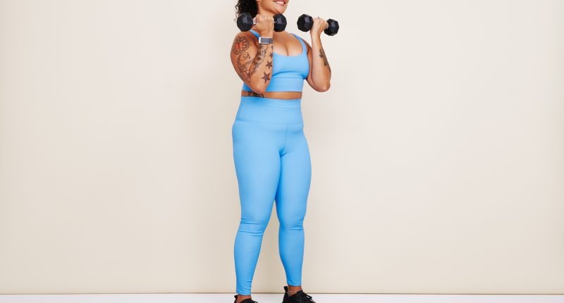 What you need: A set of dumbbells—think medium to light. The weight will vary depending on your fitness level and experience, but a range of 8 to 17 pounds can be a solid starting point. You’ll want dumbbells that are light enough that you’re able to complete the prescribed reps with proper form, but heavy enough that you feel like by the end of your repetitions, you could only do one or two more with proper form.