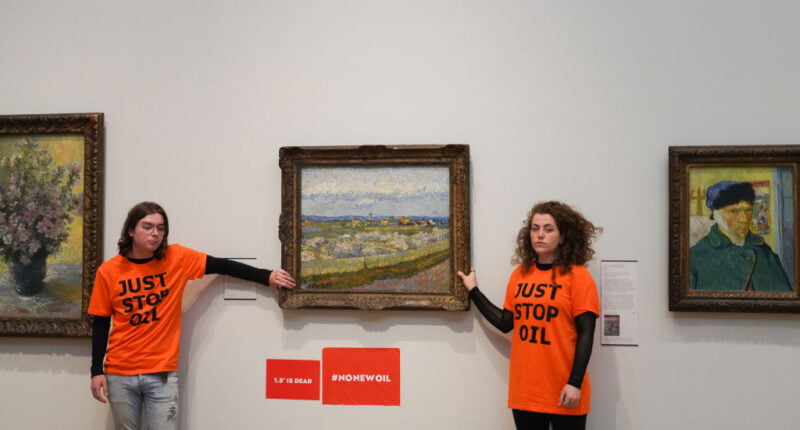 Another tactic has involved protesters targeting museum art pieces, often by attempting to glue themselves to the works—a strategy virtually guaranteed to generate widespread media attention. The trend in Europe exploded to international notoriety last month, when protesters threw tomato soup on one of the world’s most iconic paintings, Sunflowers by Vincent Van Gogh, in London’s National Portrait Gallery, before gluing their hands to the museum’s walls. Copycat protests quickly sprung up around Europe. In Germany, activists threw mashed potatoes over Grainstacks by Claude Monet, and in Italy, protesters threw pea soup on Van Gogh’s The Sower—none of the paintings, protected by glass, were damaged.