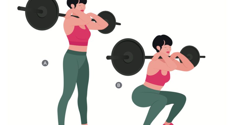 To begin front squats, position your hands on the barbell outside your shoulder span in order to unrack it, PureGym explains. The bar should rest at the front of your shoulders. Your elbows should point ahead of you. Step back from the rack. Then, initiate the squat by hinging your hips back and bending both knees. Descend until your thighs form a parallel position to the floor. Use both feet to press yourself up to the starting position.