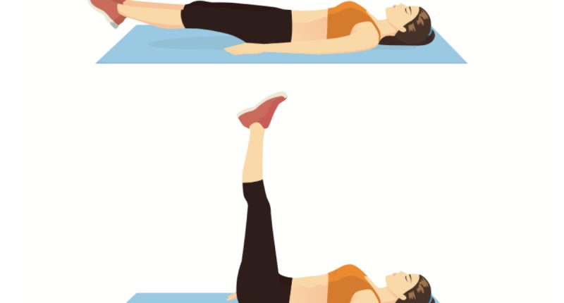 To perform a leg raise, lie flat on your back with your legs extended and your hands placed under your hips for support. Engage your core, and lift your legs up until they’re perpendicular to the floor. Slowly lower them back without letting them touch the ground. When they’re a few inches above the ground, lift them up again. Repeat for 45 seconds.