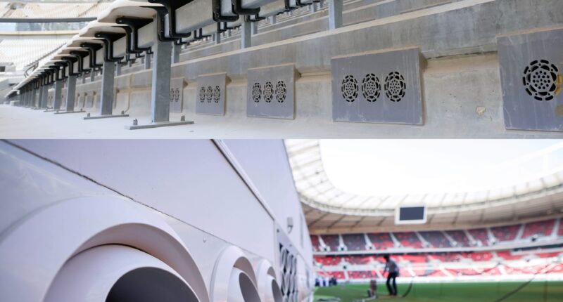 “Spot cooling means we only cool the areas where people need it—like on the pitch and in the stands,” Ghani told FIFA. “The form of each stadium acts as a barrier, which contains a cold bubble inside. Our air circulation technique cools the air, filters it, and pushes it out towards the players and fans. Each stadium is cooled to a comfortable temperature.”