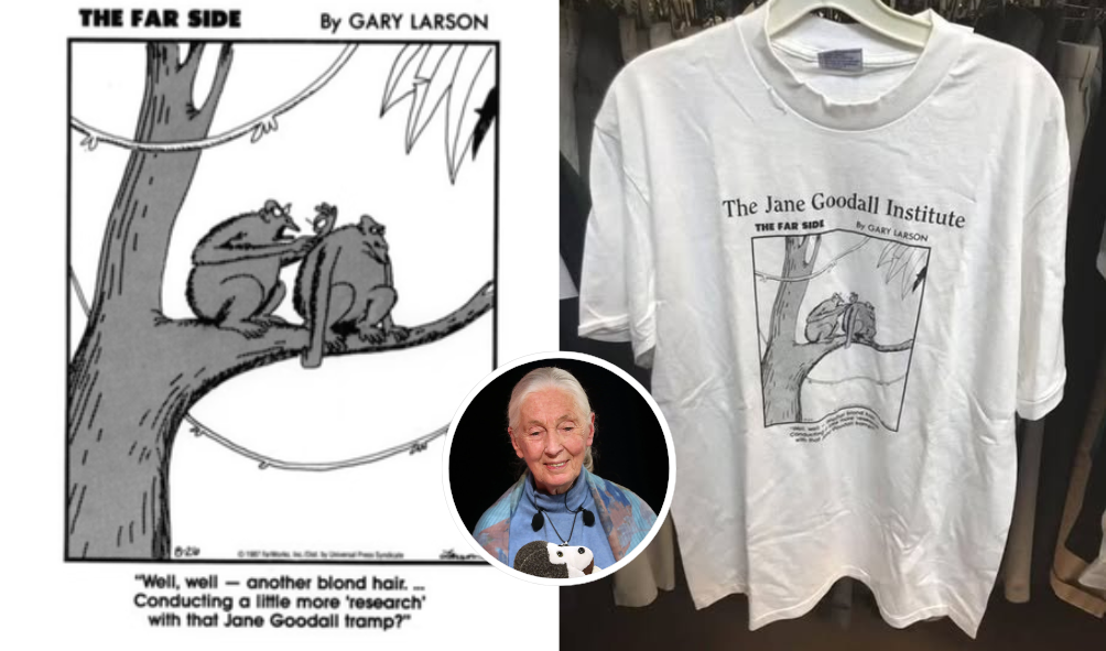 - Jane Goodall embraced the humor and even promoted Larson’s work through her institute.